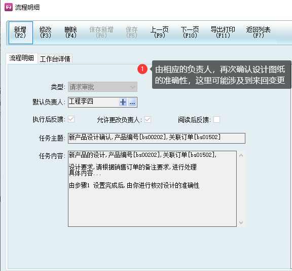 4,工程李四登錄系統,確認產品物料清單,準確后,進行通過審核。