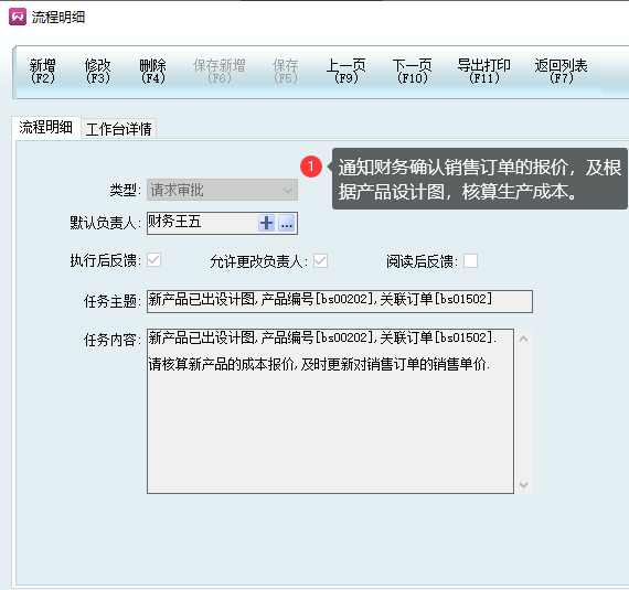 2.2 保存銷售訂單,會自動啟動工作流程,請嚴格按流程進行操作
