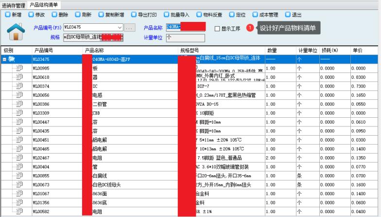 3,工程張三,收到指令,并設計好產品物料清單,工藝清單,做到 新頁生產ERP-產品結構清單里。