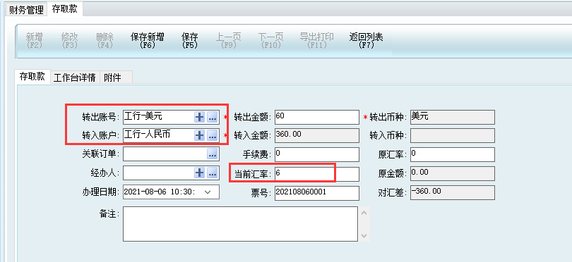 6、把收到的外幣貨款轉(zhuǎn)成人民幣,在【財務(wù)管理】-【存款款】里面把金額從外幣賬號轉(zhuǎn)到人民幣賬戶,結(jié)算的時候匯率可以手動更改